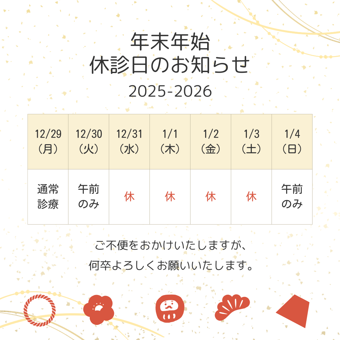 12/31(水)~1/3(土)まで休診とさせていただきます。